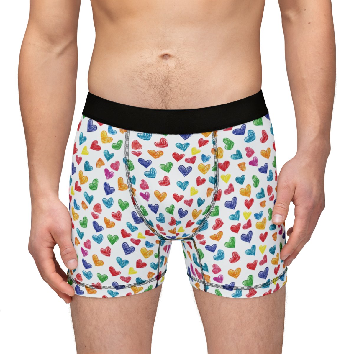 Colorful Hand Colored Hearts on White Background – Biker Apparel – Undies – Men’s Boxers