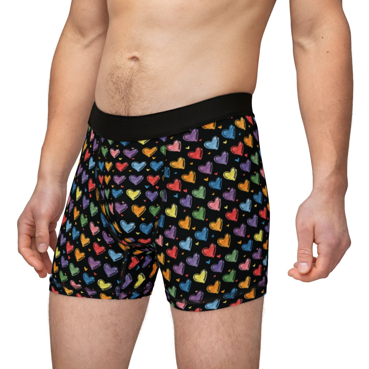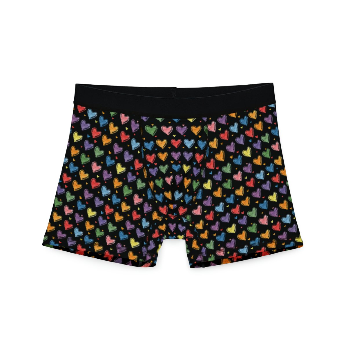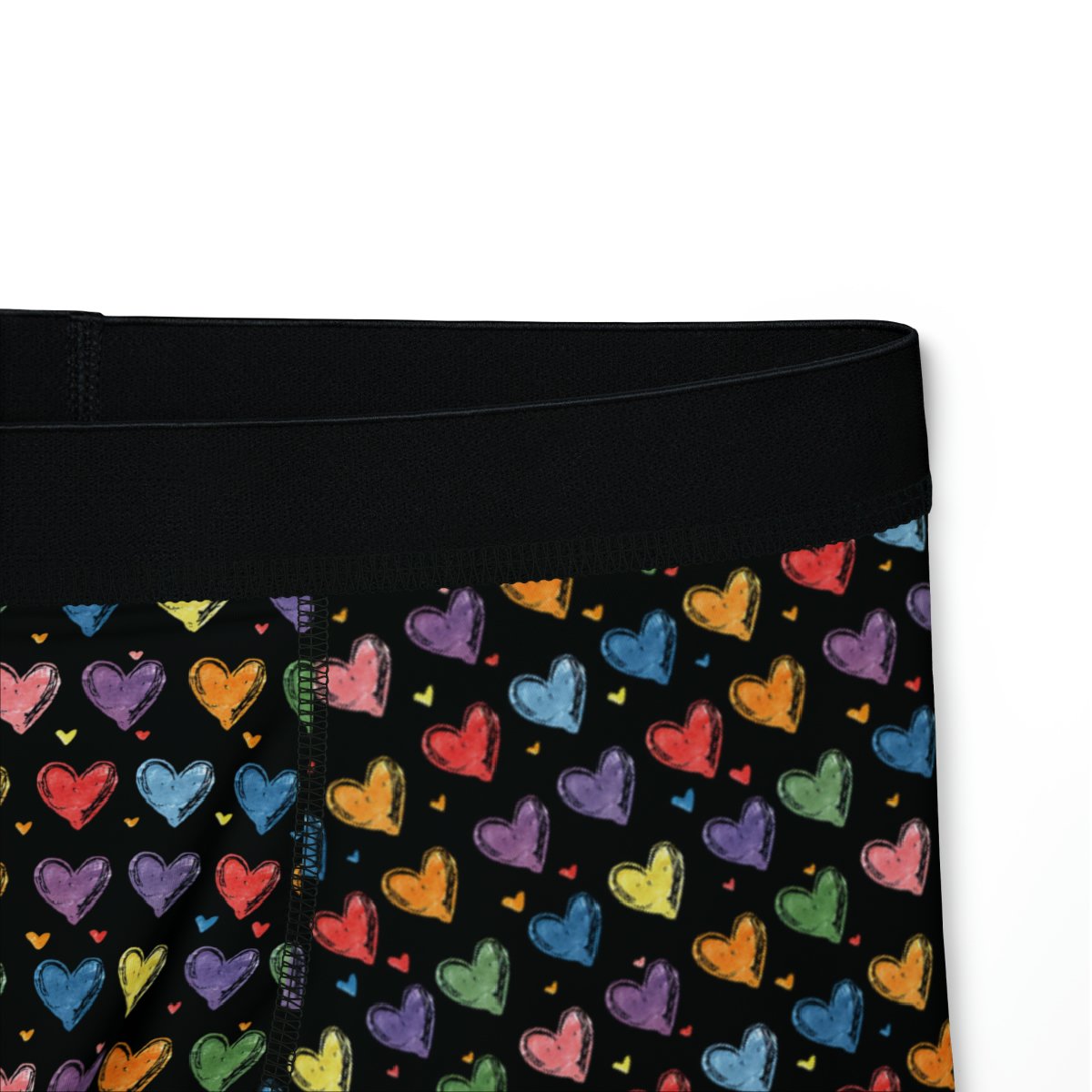 Doodle Drawn Hearts Design on Black Background – Biker Apparel – Undies – Men’s Boxers