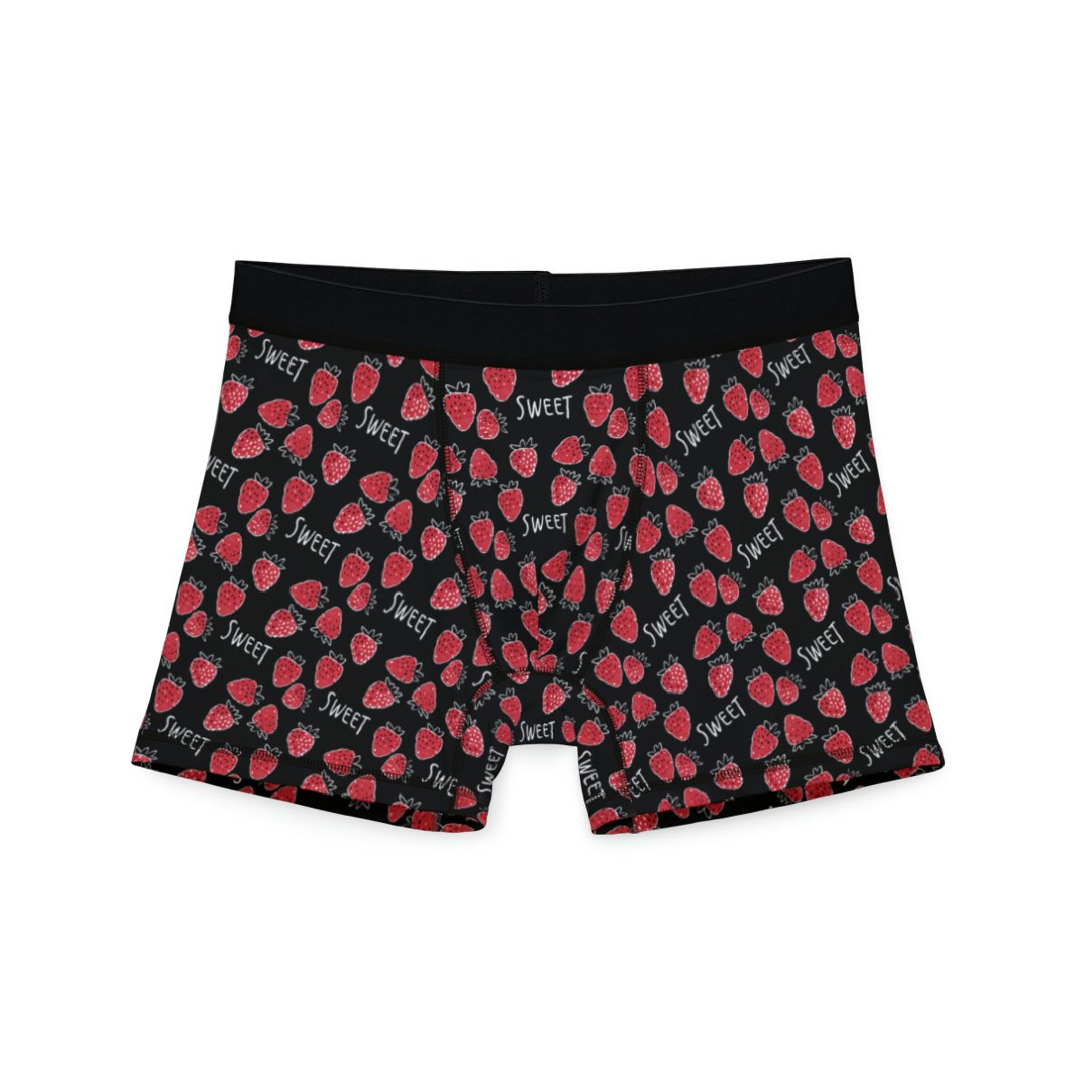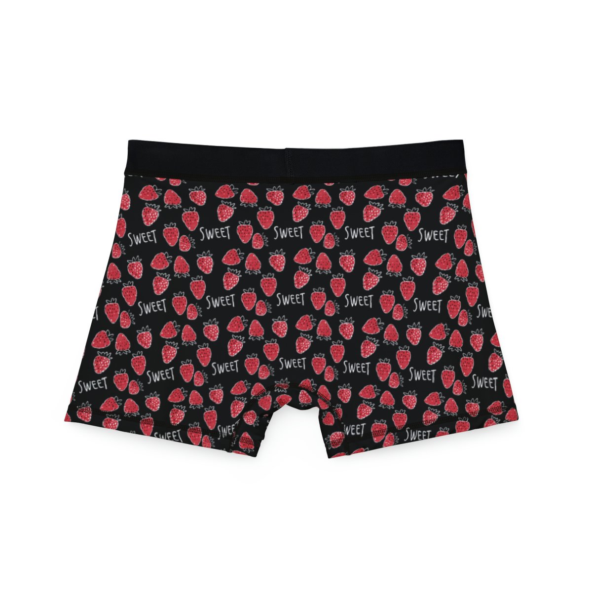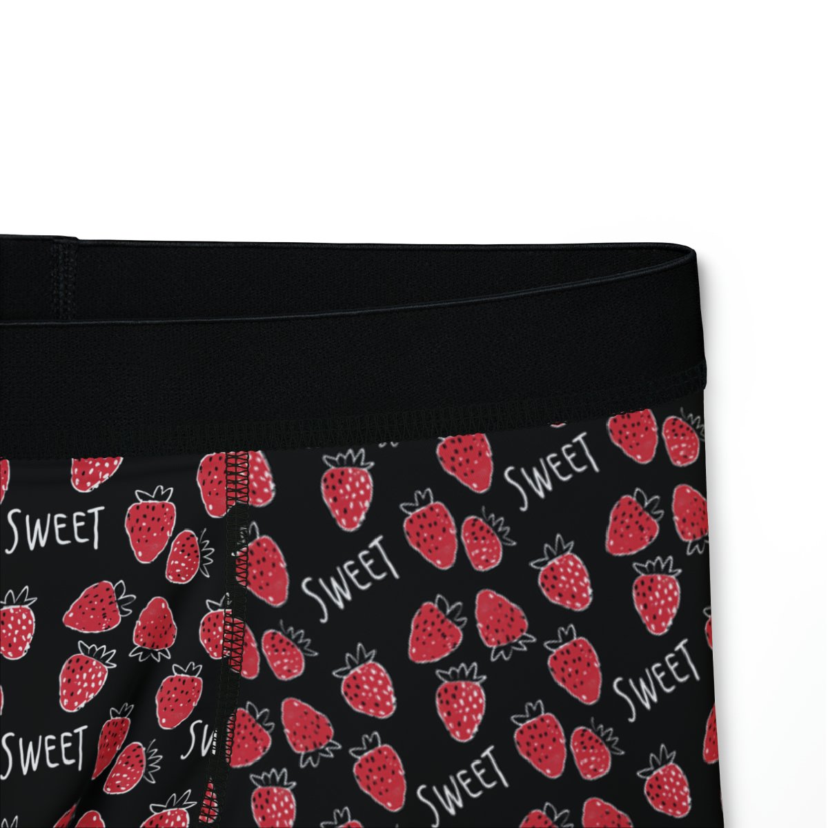 Red Strawberries on Black Background – Text Sweet – Biker Apparel – Undies – Men’s Boxers